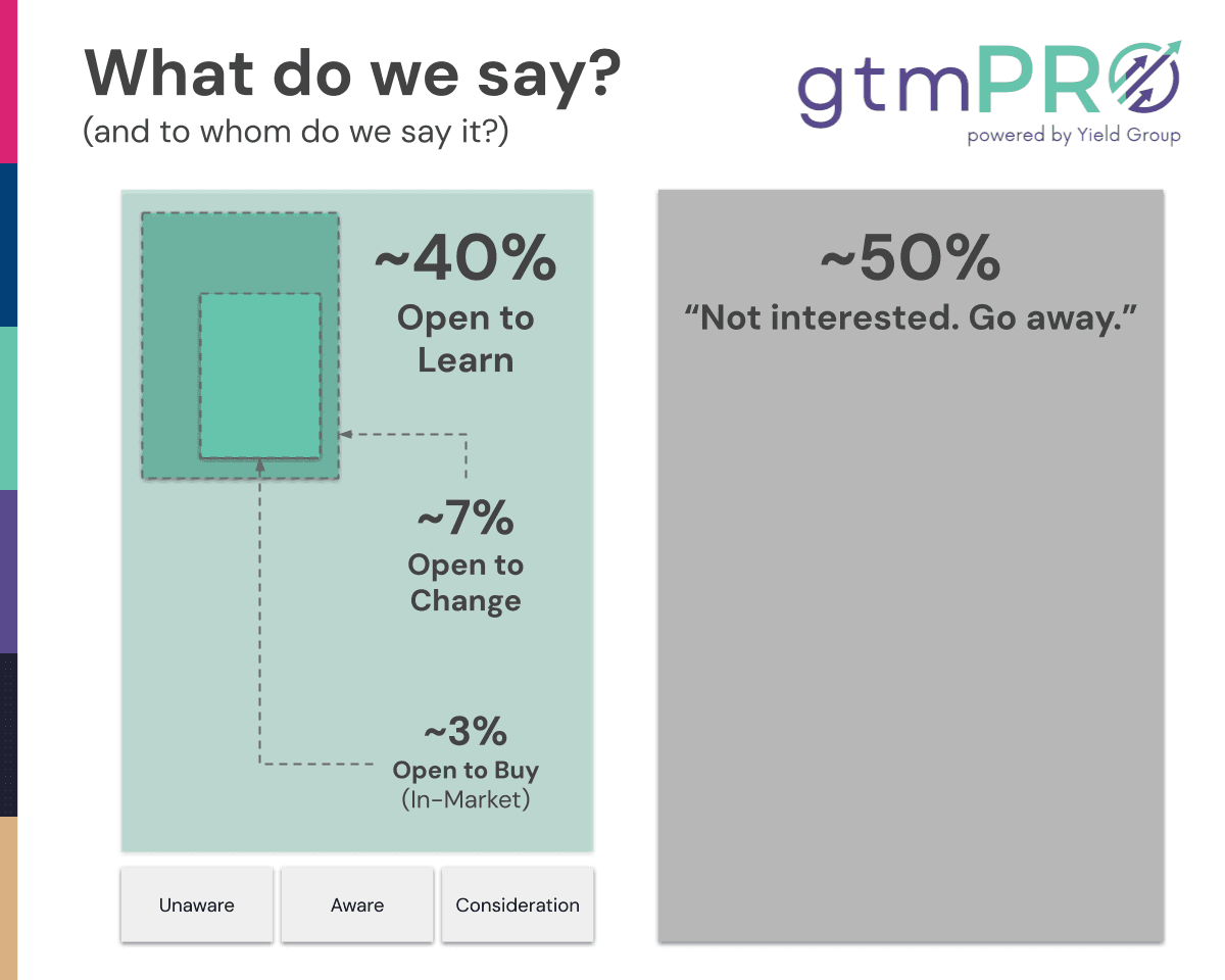 Instead of pushing "Open to Buy" (in-market) content to everyone, we instead build authentic, credible learning-based content to a much bigger segment.