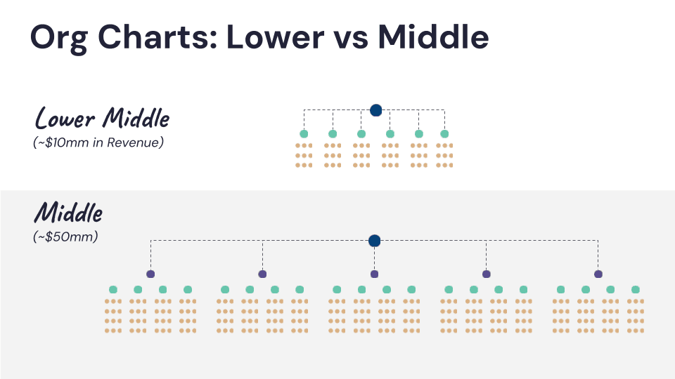 Now contrast the Lower with the Middle. As we approach $50MM in revenue, the organization changes considerably, as do the operating capabilities and requirements.